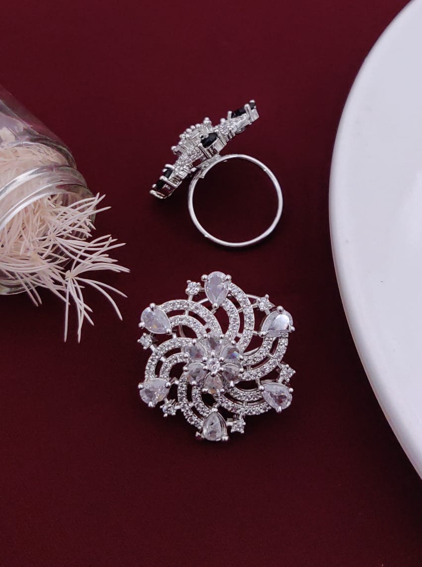 Dilkhush Silver-Plated CZ & AD-Studded Adjustable Finger Ring