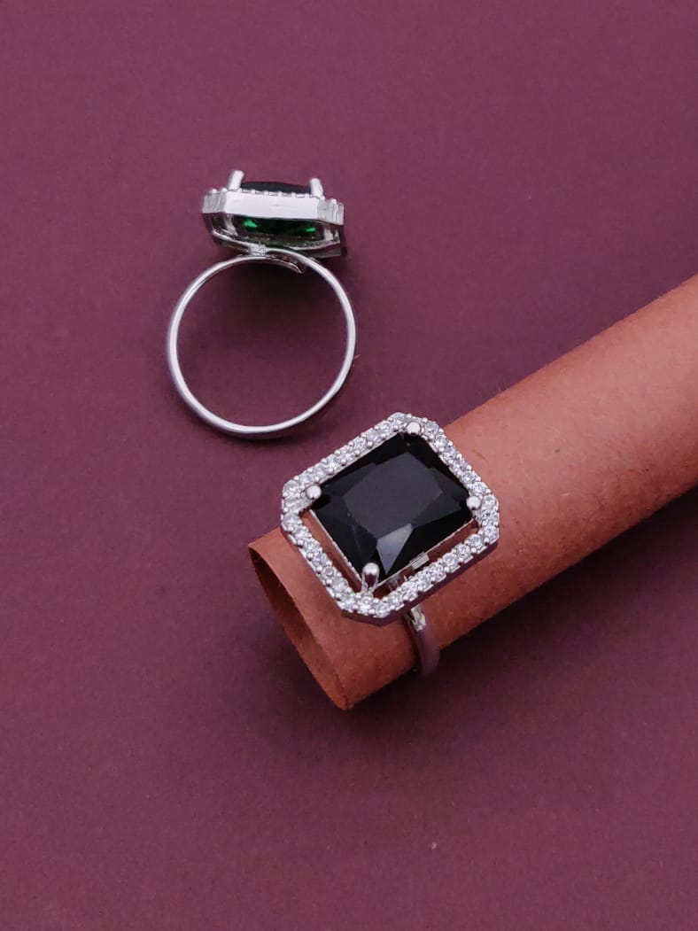 Dilkhush Silver-Plated CZ & AD-Studded Adjustable Finger Ring