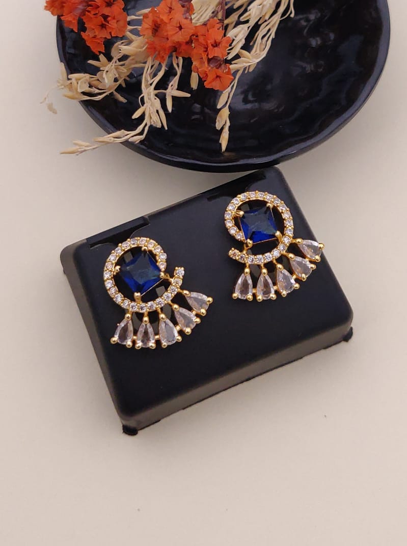 American Diamond Alloy Gold Plated Pearl Traditional Earring