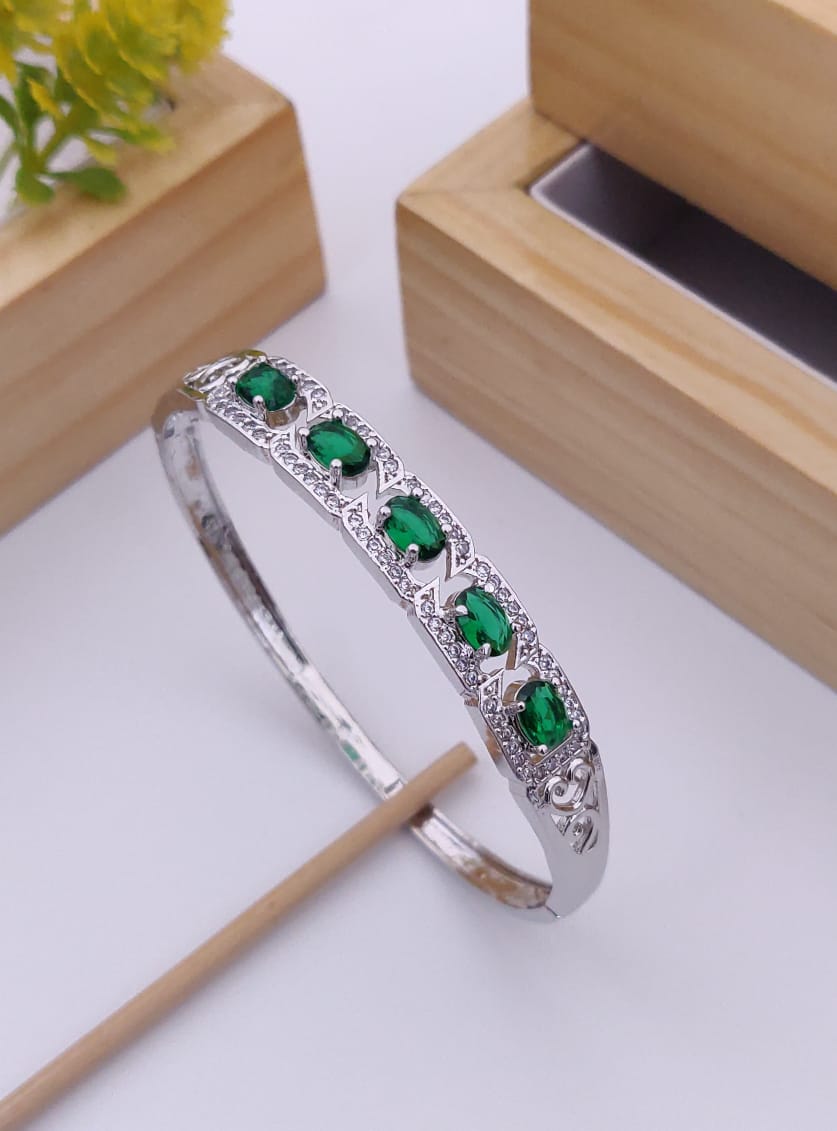 Green And White  Traditional Kada  Encased With  American Diamonds For Women/Girls